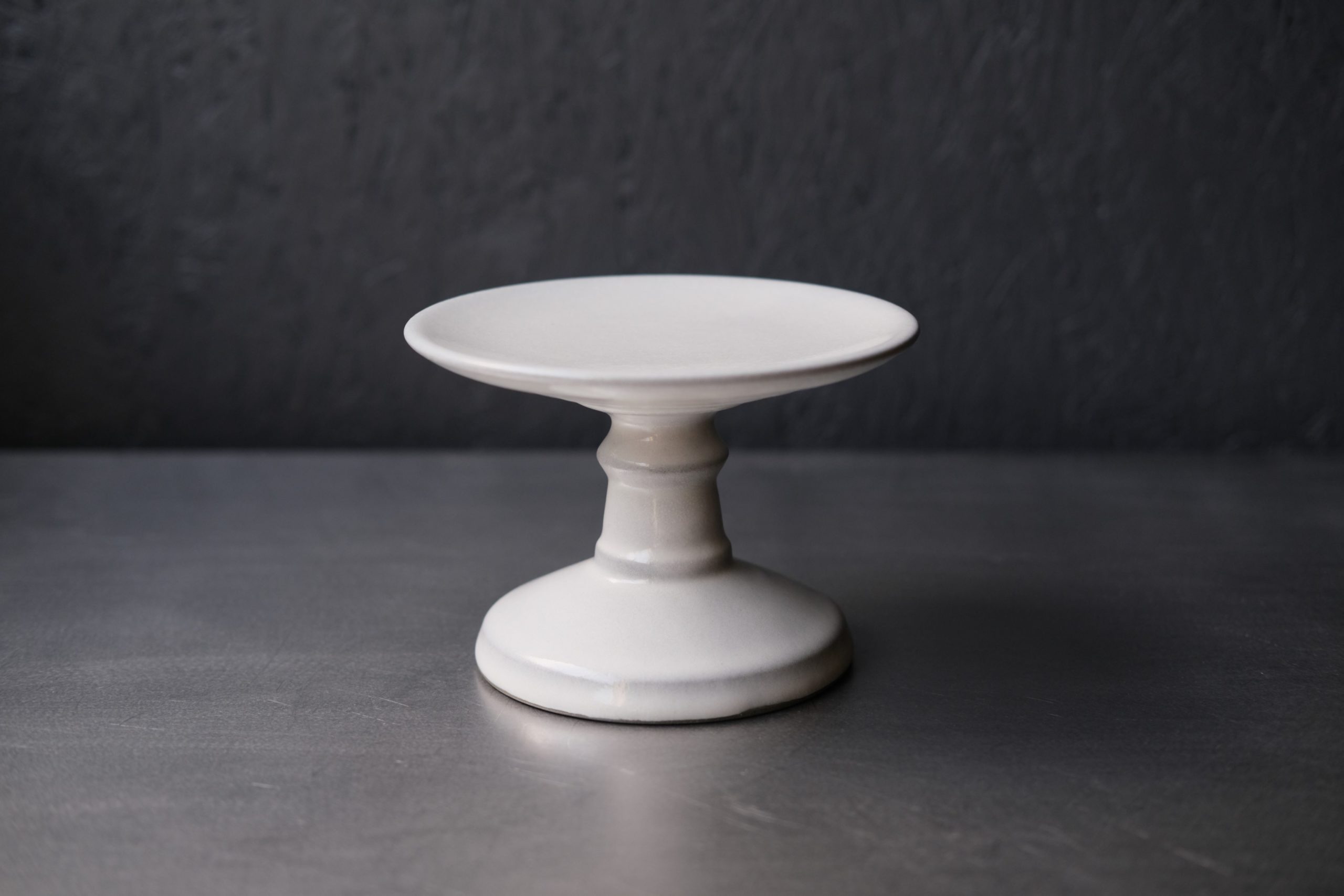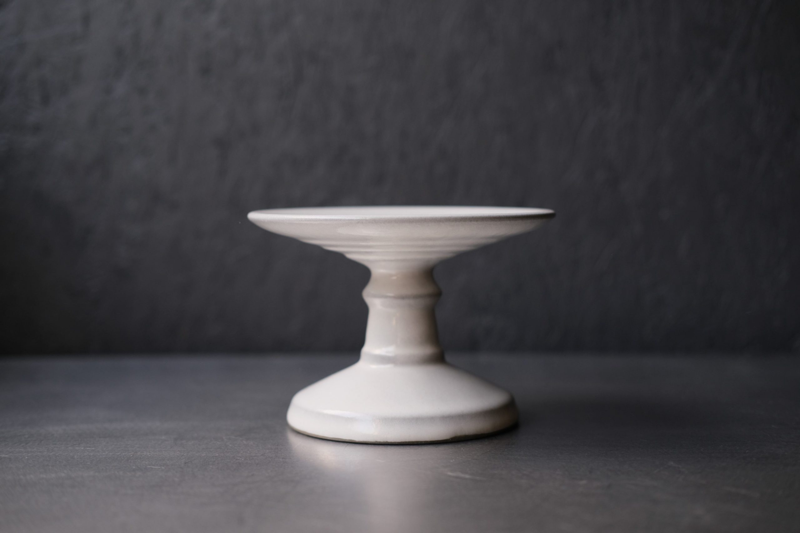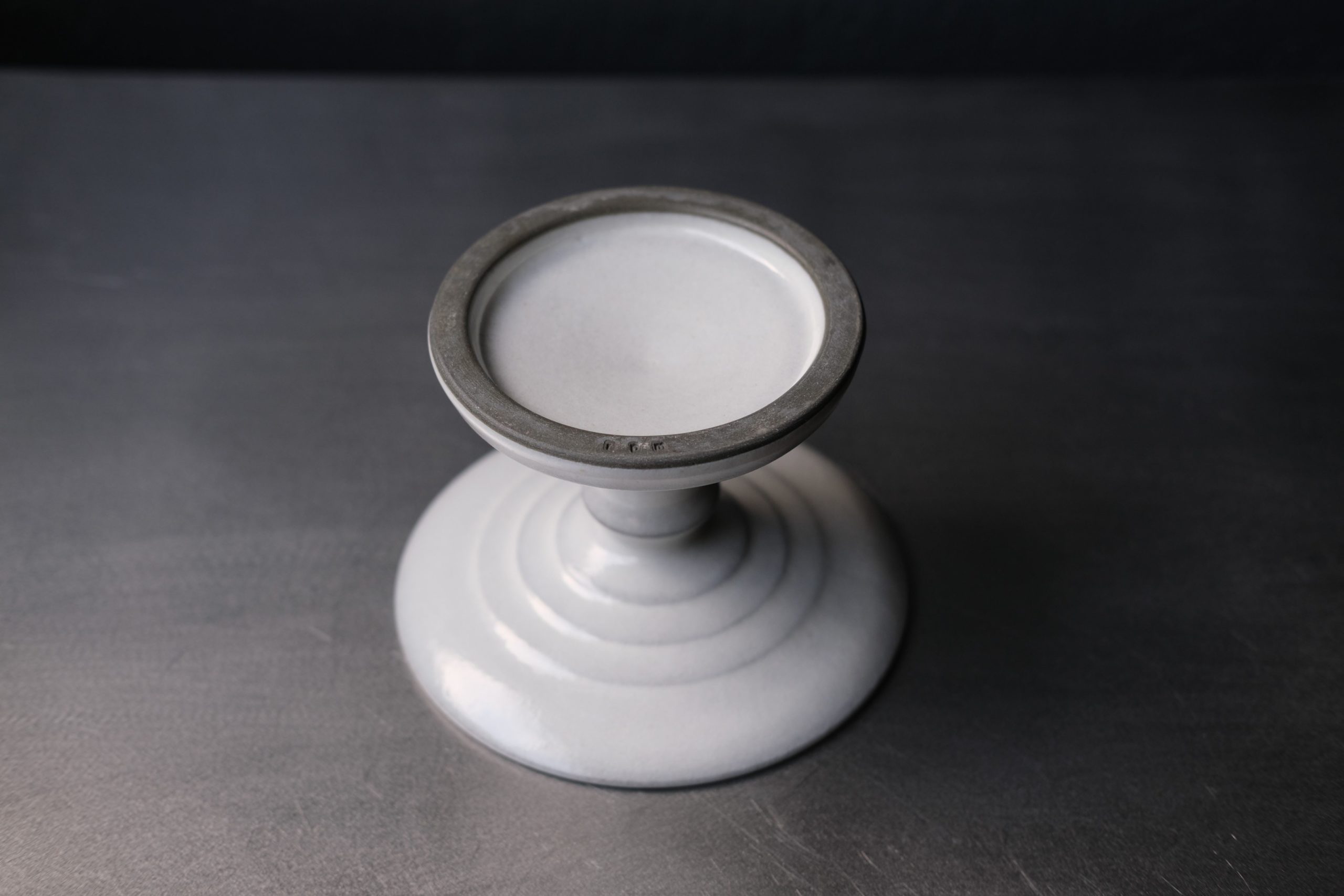 ・黒土でトロッとした白、光沢のある釉薬です。全体的な釉のかかり具合は均一ではなく、鉄粉が混じっていて真っ白ではありません。縁は少しざらつきあり。ピンホール、歪み、ロクロ目、釉だれあります。